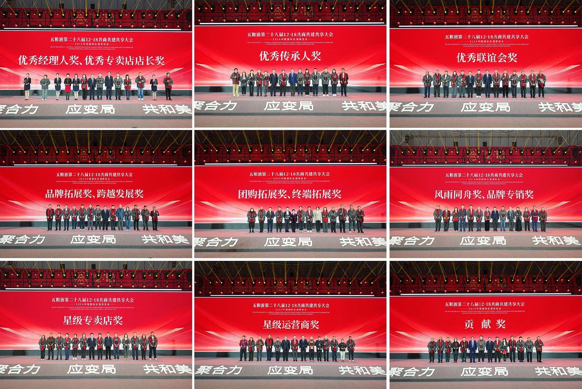 會上,五糧液還對在2024年表現(xiàn)突出的經(jīng)銷商予以了表彰和獎勵。分別為獲獎代表頒發(fā)了“優(yōu)秀經(jīng)理人”獎、“優(yōu)秀專賣店店長”獎、“優(yōu)秀傳承人”獎、“優(yōu)秀聯(lián)誼會”獎、“團(tuán)購?fù)卣?、終端拓展 ”獎、“品牌拓展、跨越發(fā)展”獎、“風(fēng)雨同舟、品牌專銷”獎、“星級專賣店”獎、“星級運營商”獎和“貢獻(xiàn)”獎等獎項。