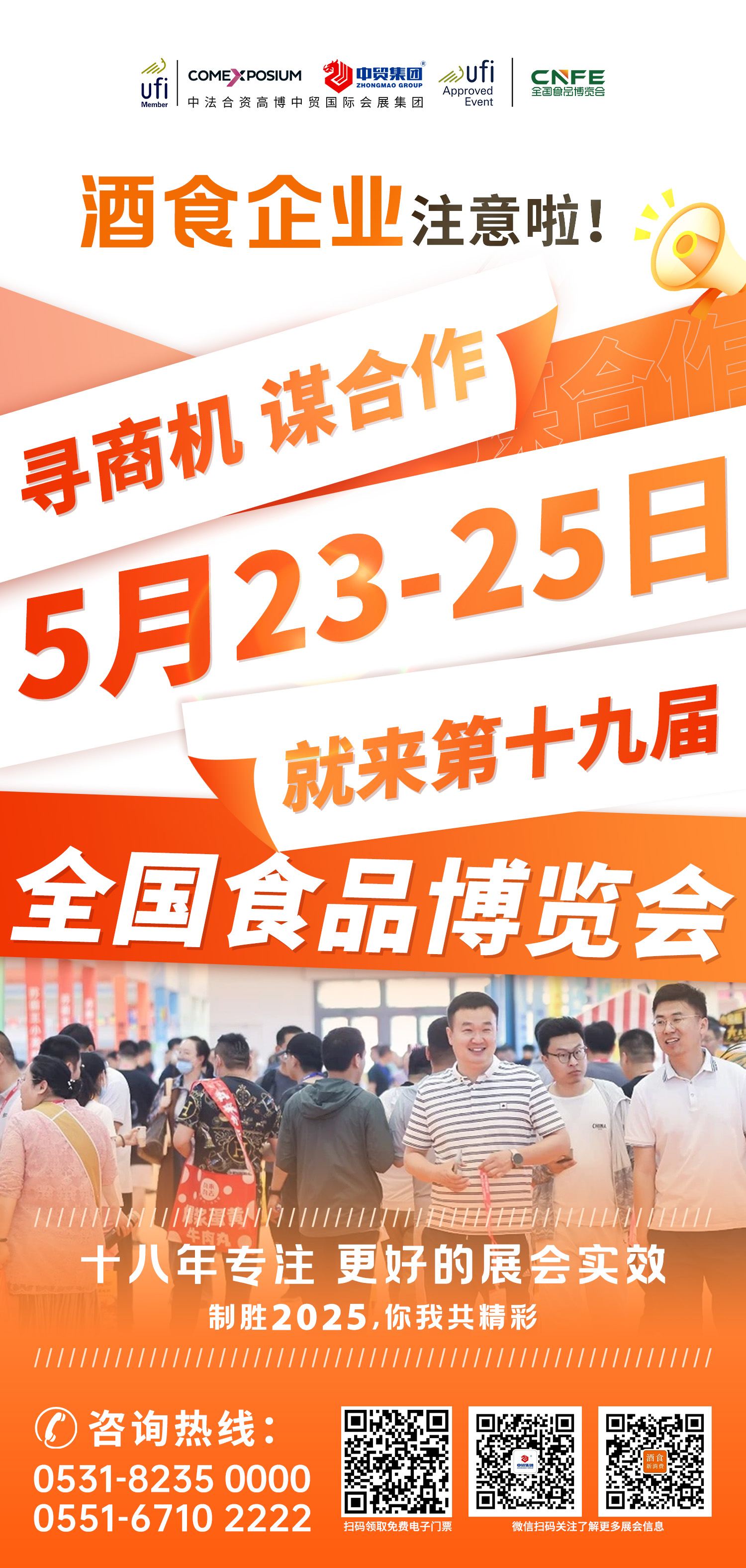 據(jù)悉,CNFE2025第十九屆全國(guó)食品博覽會(huì)將于5月23-25日在濟(jì)南市山東國(guó)際會(huì)展中心盛大舉辦。(同期展:ACE2025第三屆亞洲餐飲展覽會(huì))