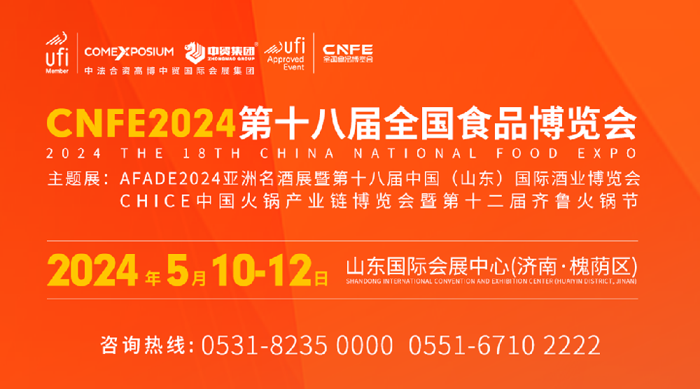 CNFE2024第十八屆全國食品博覽會將于2024年5月10日-12日在濟(jì)南市山東國際會展中心(槐蔭區(qū))盛大舉辦。【主題展:AFADE2024亞洲名酒展暨第十八···