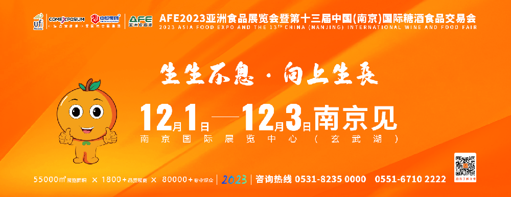 12月1日-3日,AFE2023亞洲食品展覽會暨第十三屆中國(南京)國際糖酒食品交易會(以下簡稱AFE2023亞食展暨第十三屆南京糖酒會)將在南京國際展覽中心(···
