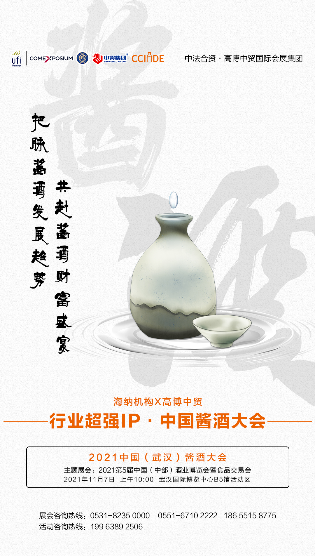 據(jù)悉,在今年2021年11月7-9日,2021年第五屆中國(中部)酒業(yè)博覽會暨食品交易會舉辦期間,將在武漢國際博覽中心同期舉辦2021中國(武漢)醬酒大會(11月7日上午10:00)。據(jù)介紹,本次醬酒大會為酒業(yè)著名智業(yè)機(jī)構(gòu)——海納機(jī)構(gòu)攜手知名酒食展主辦機(jī)構(gòu)——高博中貿(mào)國際會展集團(tuán)共同打造。中國醬酒大會作為酒類行業(yè)超強(qiáng)IP,在業(yè)內(nèi)影響深遠(yuǎn)、廣泛。屆時,本次醬酒大會將邀請眾多名優(yōu)醬酒品牌代表、行業(yè)大咖共聚一堂,共論醬酒發(fā)展大勢,共赴醬酒財富盛宴。