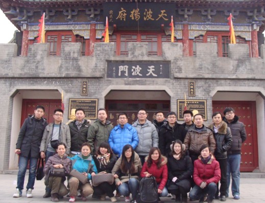 1月4日早晨六點,濟南中貿(mào)參與汽車用品展的優(yōu)秀同仁30余人在杜總的帶領下,坐上了駛向河南開封市的大巴車,開始了為期兩天難忘的河南之旅。一路上車內歡聲笑語不斷,拋開級別和隸屬的約束,盡情的享受著旅游帶給我們的喜悅。經(jīng)過六個小時的車程,大家懷揣激動的心情終于到達目的地開封。午飯過后在當?shù)貙в蔚囊I之下我們來到了旅游第一站開封府。北宋時期的開封是全國政治、經(jīng)濟、文化的中心,也是當時世界上最繁華的大都會,可謂八荒爭湊,萬國咸通。先后有寇準、范仲淹、包拯、歐陽修、司馬光、蘇軾等一大批杰出的政治家、文學家、思想家、軍事家在此任職,不僅樹立宏揚了公生明的道德正氣,也在此形成了以廉正剛毅為鮮明特色的府衙文化。開封府占地60余畝,建筑面積1.36萬平方米,樓閣碧水的壯麗景觀讓大家著實的興奮喜悅。氣勢恢弘,巍峨壯觀的建筑物不時的讓我們發(fā)出驚嘆。我們走走停停,不時的拍照留影,想要永久的將這壯麗的景象留在腦海之中。感受過鮮明特色的府衙文化之后我們來到了旅游第二站曾經(jīng)的皇家寺院大相國寺。一下車,我們就被這氣勢非凡的寺院所吸引。進入寺院魯智深倒拔垂楊柳的雕像映入我們眼中,大家紛紛搶著和這位可愛的花和尚合影留念。兩邊的建筑一邊是鐘樓另一邊一是鼓樓。晨鐘暮鼓是我國所有佛教寺院用來報時的定律。在秋冬霜天叩擊,鐘聲能響徹全城,故“相國霜鐘”成為汴京八景之一。繼續(xù)前行我們參拜了六角觀音閣里的千手觀音,大雄寶殿中的釋迦摩尼佛。感受佛教文化,接受了一次心靈的洗禮。參觀完氣勢非凡的大相國寺我們來到了精武之家楊家將的府宅天波楊府。很小的時候我們就喜愛聽評書楊家將,來到楊府,氣勢果真非同一般。走過楊府的練兵場,這里的一景一物都在向我們講述著這一家人的傳奇色彩的忠烈故事。轉過前庭,走到楊府的御賜花園,這里流傳著寇準背靴,八姐游春的故事,讓大家津津樂道。游覽完天波楊府我們結束了第一天的行程。晚飯過后,大家各自回房休息養(yǎng)足精神期待第二天的少林寺之行。