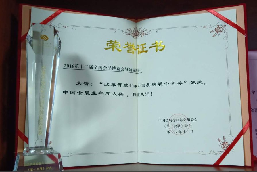 全國食品博覽會已經(jīng)成功舉辦了12屆,其專業(yè)化、市場化、國際化、綜合化不斷提升,是中國食品領(lǐng)域最具知名度和權(quán)威性的展覽會之一。在2018年度中國會展產(chǎn)業(yè)頒獎盛典上,由中貿(mào)集團主辦的“全國食品博覽會”榮膺“改革開放40年中國品牌展會金獎”殊榮。在山東省商務(wù)廳組織開展的第二批山東省品牌展會評選中,全國食品博覽會獲得“山東省品牌展會”稱號。這榮譽不僅是對展會走向品牌化的權(quán)威肯定,亦是對近年來全國食品博覽會在會展產(chǎn)業(yè)發(fā)展道路中所做出的突出貢獻和成績的肯定。