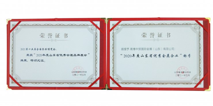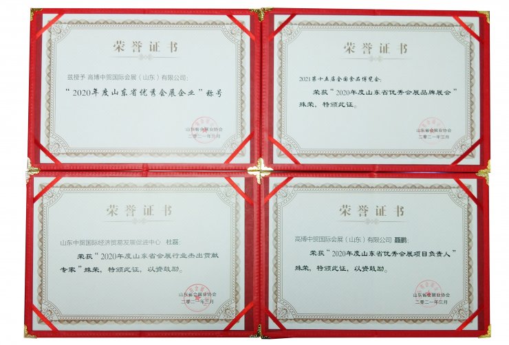 2021第十五屆全國食品博覽會榮獲“2020年度山東省優(yōu)秀會展品牌展會”殊榮