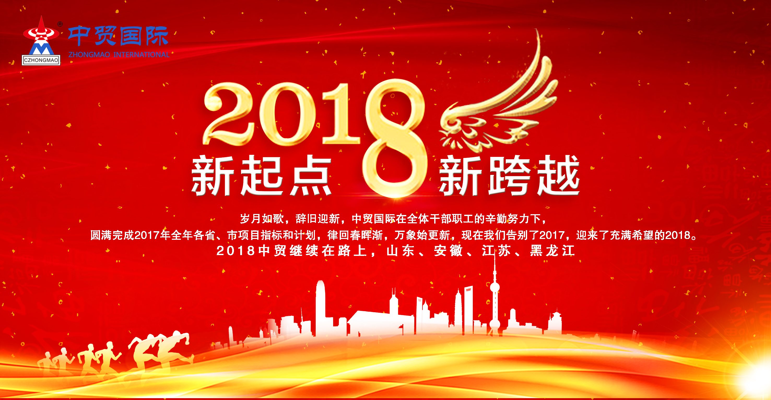 凝聚力量再創(chuàng)輝煌2018中貿(mào)集團(tuán)繼續(xù)在路上 歲月如歌,辭舊迎新,中貿(mào)國(guó)際在全體干部職工的辛勤努力下,圓滿完成2017年全年 各省、市項(xiàng)目指標(biāo)和計(jì)劃,律回春暉漸,···